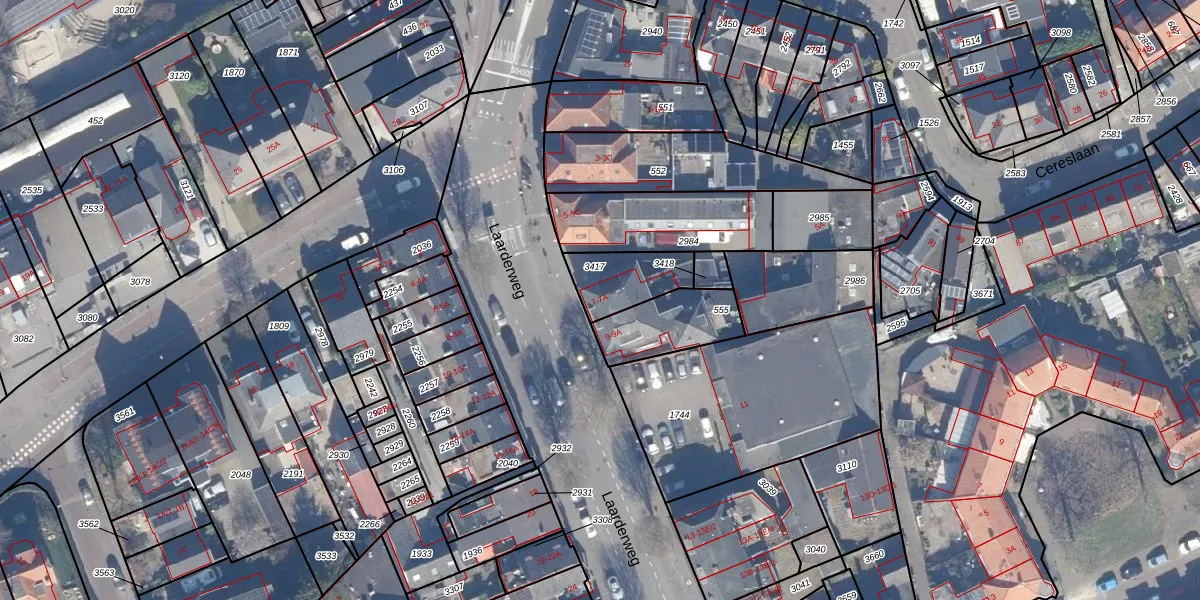 Laarderweg 7 is gelegen op kadastraal perceel BSM01G3417. Deze kadastrale aanduiding is uniek en wordt gebruikt door het Kadaster om eigendomsrechten en andere zakelijke rechten vast te leggen. Het perceel maakt onderdeel uit van de kadastrale gemeente Bussum.