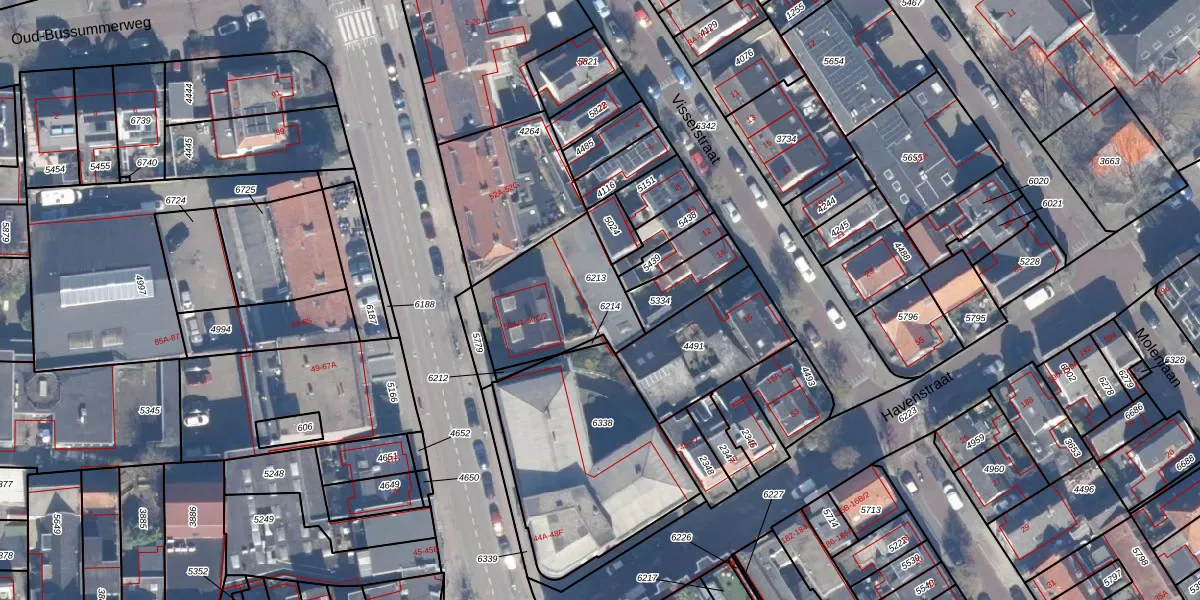 Het perceel waarop het adres ligt is BSM01-B-6213. De afkorting 'BSM01' staat voor kadastrale gemeente Bussum. De gemiddelde perceelgrootte in Bussum is 593,92 m². Dit perceel is kleiner: de perceeloppervlakte bedraagt 421 m². Het kleinste perceel in de kadastrale gemeente is 0 m² groot. De grootste perceeloppervlakte is 38,9 ha. Op het perceel liggen in totaal 10 adressen. In de Basisregistratie Kadaster (BRK) werden de grenzen van het perceel geregistreerd op 06-07-2006.