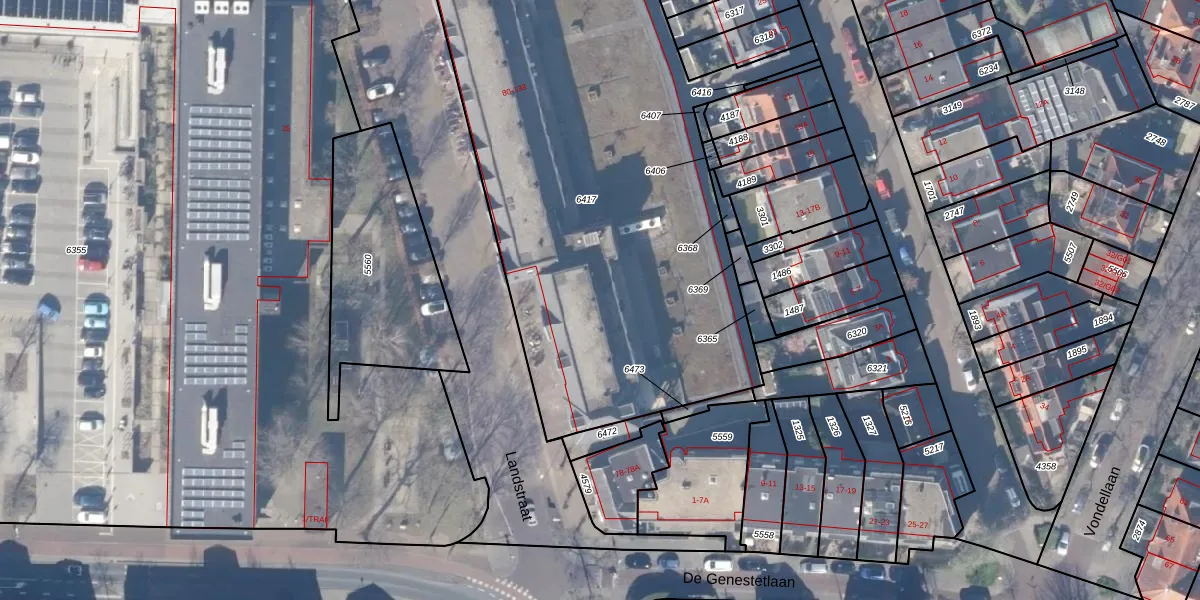Landstraat 82-D is gelegen op kadastraal perceel BSM01B6417. Deze kadastrale aanduiding is uniek en wordt gebruikt door het Kadaster om eigendomsrechten en andere zakelijke rechten vast te leggen. Het perceel maakt onderdeel uit van de kadastrale gemeente Bussum.