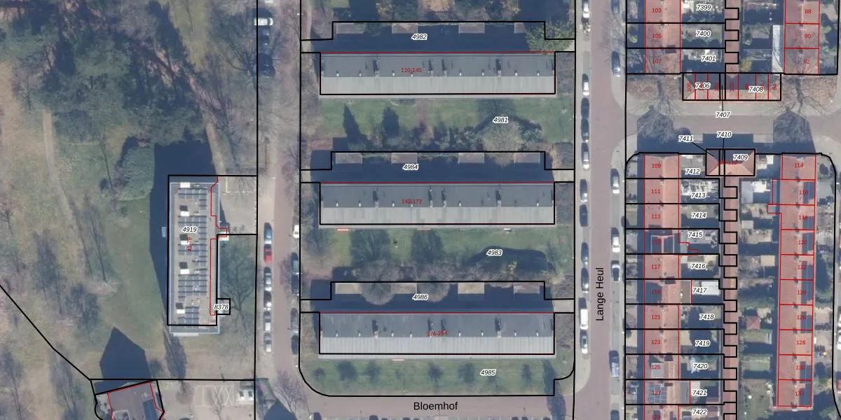 Het perceel waarop Lange Heul 166 staat heeft een oppervlakte van 971 m². Dit is een groot perceel. De perceeloppervlakte wordt geregistreerd door het Kadaster. Gedetailleerde informatie over de maten van dit perceel kunt u vinden in het rapport Kadastrale kaart met maatvoering van Lange Heul 166.