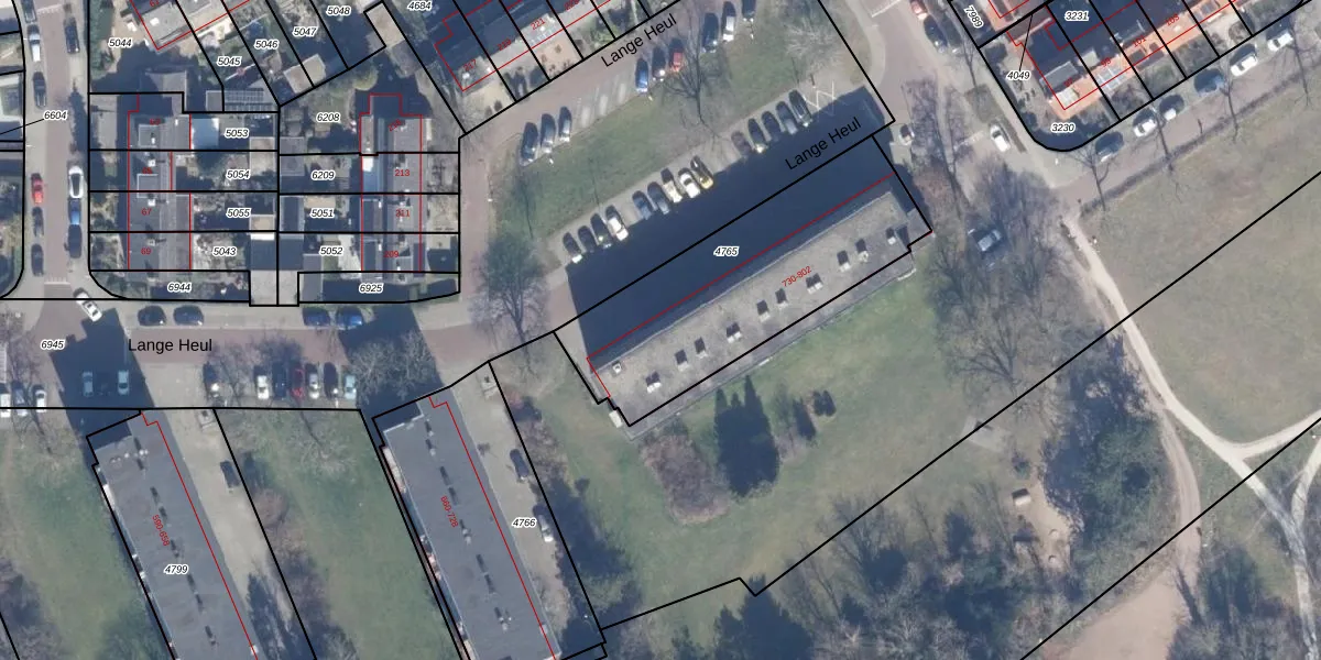 Het perceel waarop Lange Heul 736 staat heeft een oppervlakte van 1019 m². Dit is een zeer groot perceel. De perceeloppervlakte wordt geregistreerd door het Kadaster. Gedetailleerde informatie over de maten van dit perceel kunt u vinden in het rapport Kadastrale kaart met maatvoering van Lange Heul 736.