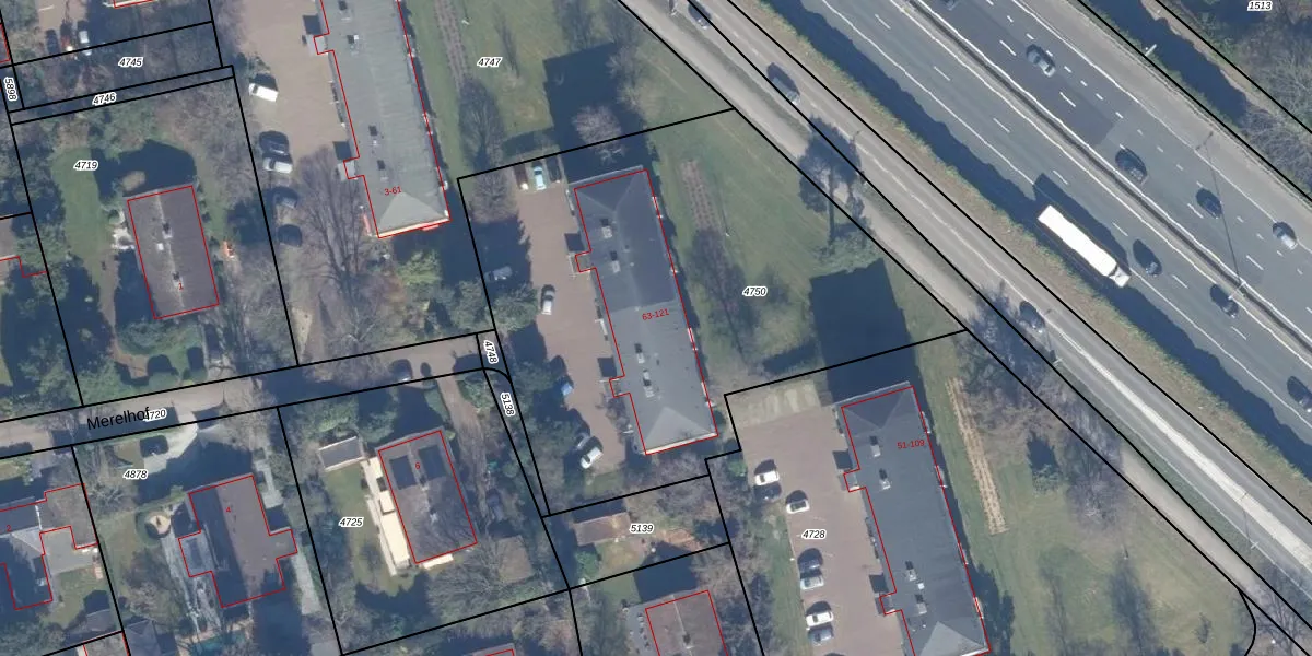 Het perceel waarop Merelhof 113 staat heeft een oppervlakte van 2687 m². Dit is een zeer groot perceel. De perceeloppervlakte wordt geregistreerd door het Kadaster. Gedetailleerde informatie over de maten van dit perceel kunt u vinden in het rapport Kadastrale kaart met maatvoering van Merelhof 113.