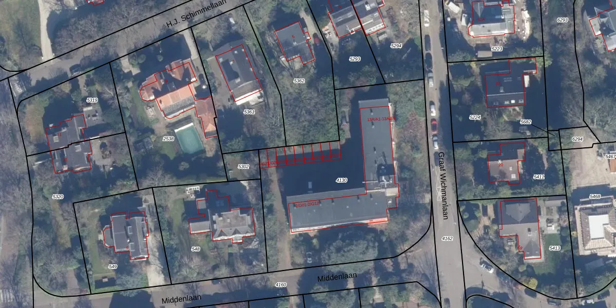 Het perceel waarop Middenlaan 2-G16 staat heeft een oppervlakte van 2602 m². Dit is een zeer groot perceel. De perceeloppervlakte wordt geregistreerd door het Kadaster. Gedetailleerde informatie over de maten van dit perceel kunt u vinden in het rapport Kadastrale kaart met maatvoering van Middenlaan 2-G16.