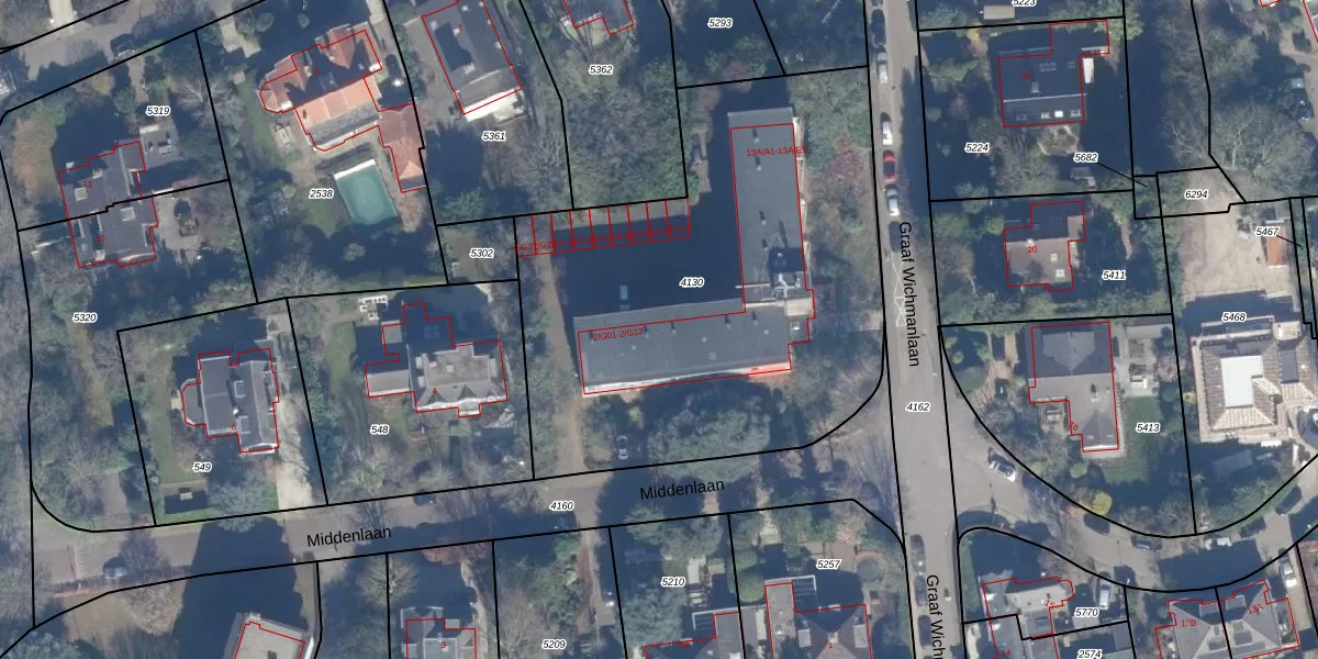 Het perceel waarop Middenlaan 2-G03 staat heeft een oppervlakte van 2602 m². Dit is een zeer groot perceel. De perceeloppervlakte wordt geregistreerd door het Kadaster. Gedetailleerde informatie over de maten van dit perceel kunt u vinden in het rapport Kadastrale kaart met maatvoering van Middenlaan 2-G03.