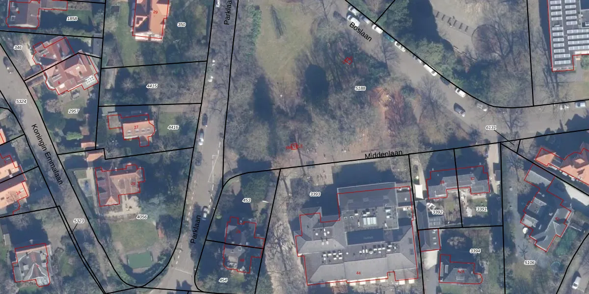 Middenlaan 39-A-TELE is gelegen op kadastraal perceel BSM01E5188. Deze kadastrale aanduiding is uniek en wordt gebruikt door het Kadaster om eigendomsrechten en andere zakelijke rechten vast te leggen. Het perceel maakt onderdeel uit van de kadastrale gemeente Bussum.