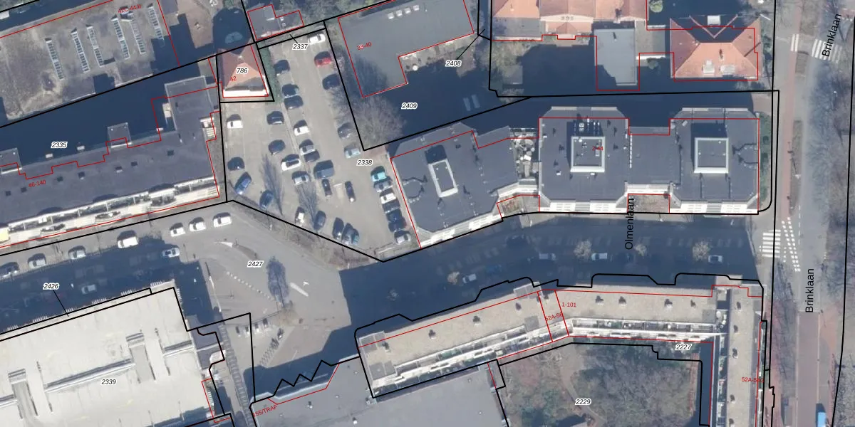 Het perceel waarop Olmenlaan 24-B-2 staat heeft een oppervlakte van 3821 m². Dit is een zeer groot perceel. De perceeloppervlakte wordt geregistreerd door het Kadaster. Gedetailleerde informatie over de maten van dit perceel kunt u vinden in het rapport Kadastrale kaart met maatvoering van Olmenlaan 24-B-2.