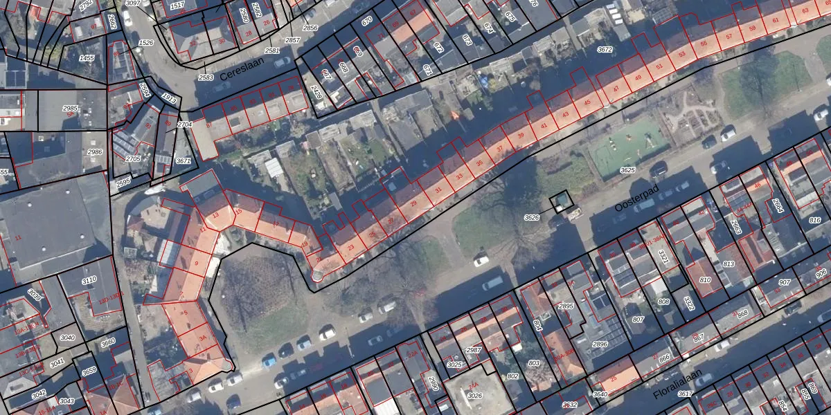 Het perceel waarop Oosterpad 29 staat heeft een oppervlakte van 8532 m². Dit is een zeer groot perceel. De perceeloppervlakte wordt geregistreerd door het Kadaster. Gedetailleerde informatie over de maten van dit perceel kunt u vinden in het rapport Kadastrale kaart met maatvoering van Oosterpad 29.