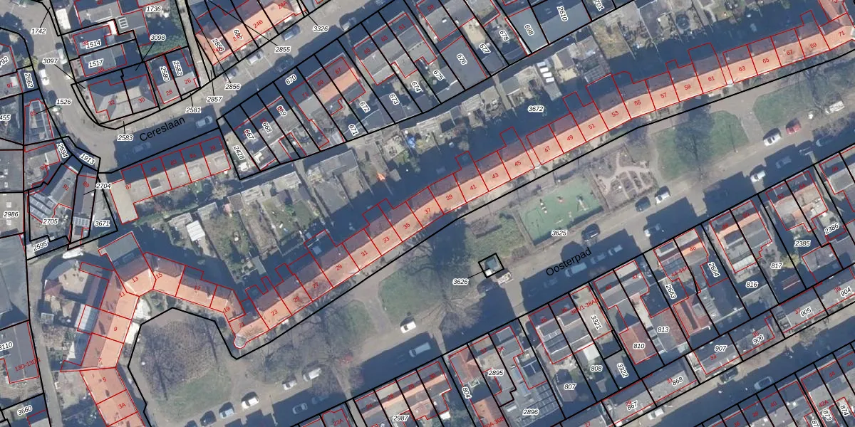 Het perceel waarop Oosterpad 37 staat heeft een oppervlakte van 8532 m². Dit is een zeer groot perceel. De perceeloppervlakte wordt geregistreerd door het Kadaster. Gedetailleerde informatie over de maten van dit perceel kunt u vinden in het rapport Kadastrale kaart met maatvoering van Oosterpad 37.
