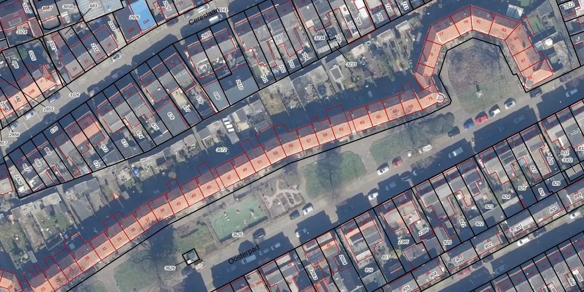 Het perceel waarop Oosterpad 55 staat heeft een oppervlakte van 8532 m². Dit is een zeer groot perceel. De perceeloppervlakte wordt geregistreerd door het Kadaster. Gedetailleerde informatie over de maten van dit perceel kunt u vinden in het rapport Kadastrale kaart met maatvoering van Oosterpad 55.