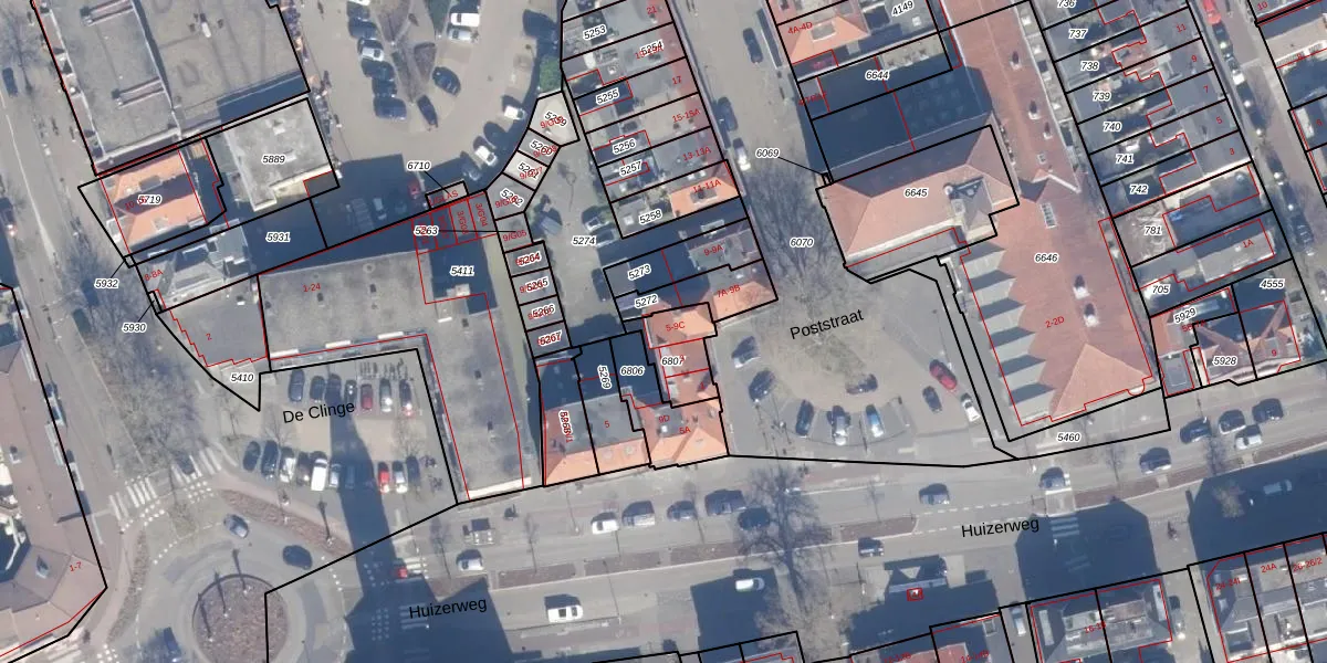 Poststraat 9-C is gelegen op kadastraal perceel BSM01B6807. Deze kadastrale aanduiding is uniek en wordt gebruikt door het Kadaster om eigendomsrechten en andere zakelijke rechten vast te leggen. Het perceel maakt onderdeel uit van de kadastrale gemeente Bussum.