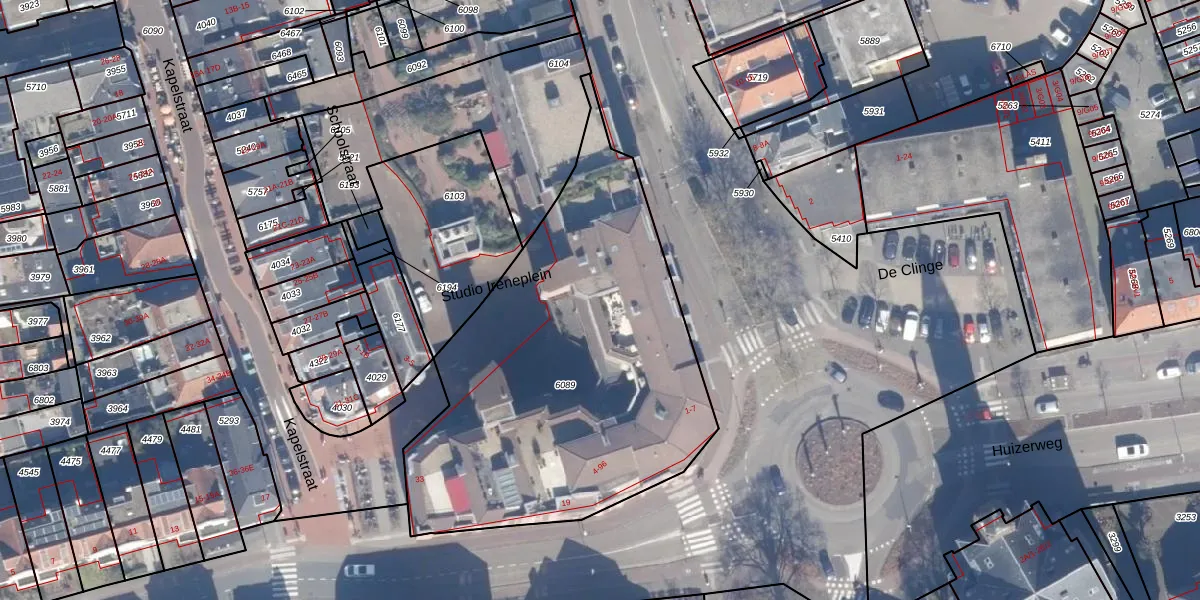 Schoolstraat 12 is gelegen op kadastraal perceel BSM01B6089. Deze kadastrale aanduiding is uniek en wordt gebruikt door het Kadaster om eigendomsrechten en andere zakelijke rechten vast te leggen. Het perceel maakt onderdeel uit van de kadastrale gemeente Bussum.