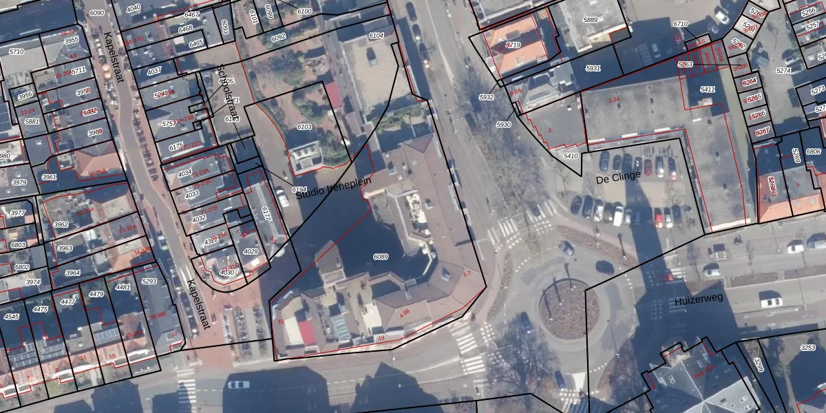 Het adres is gelegen op perceel 6089 in de sectie B en de kadastrale gemeente Bussum. De kadastrale aanduiding is aldus BSM01-B-6089. Het perceel is met 1995 m² relatief groot. Het gemiddelde ligt in de kadastrale gemeente Bussum op 593,92 m². Het kleinste perceel in de kadastrale gemeente is 0 m² groot. De grootste perceeloppervlakte is 38,9 ha. Op het perceel zijn 53 adressen aanwezig. In de Basisregistratie Kadaster (BRK) werden de grenzen van het perceel geregistreerd op 11-05-2001.