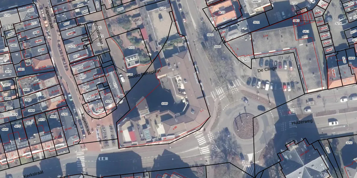 Het adres is gelegen op perceel 6089 in de sectie B en de kadastrale gemeente Bussum. De kadastrale aanduiding is aldus BSM01-B-6089. Het perceel is met 1995 m² relatief groot. Het gemiddelde ligt in de kadastrale gemeente Bussum op 593,92 m². Het kleinste perceel in de kadastrale gemeente is 0 m² groot. De grootste perceeloppervlakte is 38,9 ha. Op het perceel zijn 53 adressen aanwezig. In de Basisregistratie Kadaster (BRK) werden de grenzen van het perceel geregistreerd op 11-05-2001.