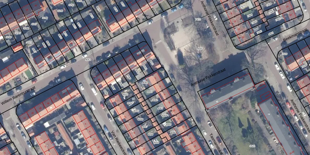Gebruik de zoekbalk of klik op een perceel voor informatie over de adressen binnen dit perceel.