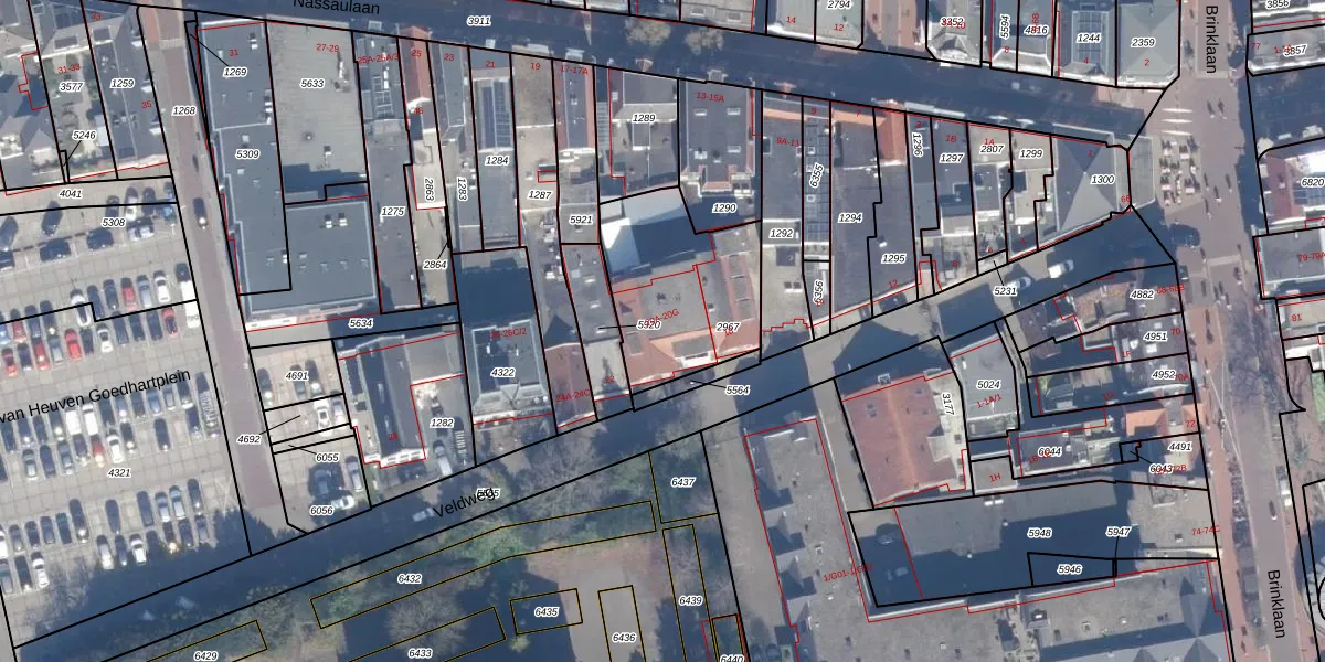 Het adres is gelegen op perceel 2967 in de sectie E en de kadastrale gemeente Bussum. De kadastrale aanduiding is aldus BSM01-E-2967. Het perceel is kleiner dan gemiddeld in Bussum. Het perceel is 558 m² groot, terwijl het gemiddelde ligt op 593,92 m². Het grootste perceel in de kadastrale gemeente is 38,9 ha. Het kleinste perceel heeft een oppervlakte van 0 m². Er zijn 8 adressen aanwezig op het perceel. In de Basisregistratie Kadaster (BRK) werden de grenzen van het perceel geregistreerd op 24-02-2003.