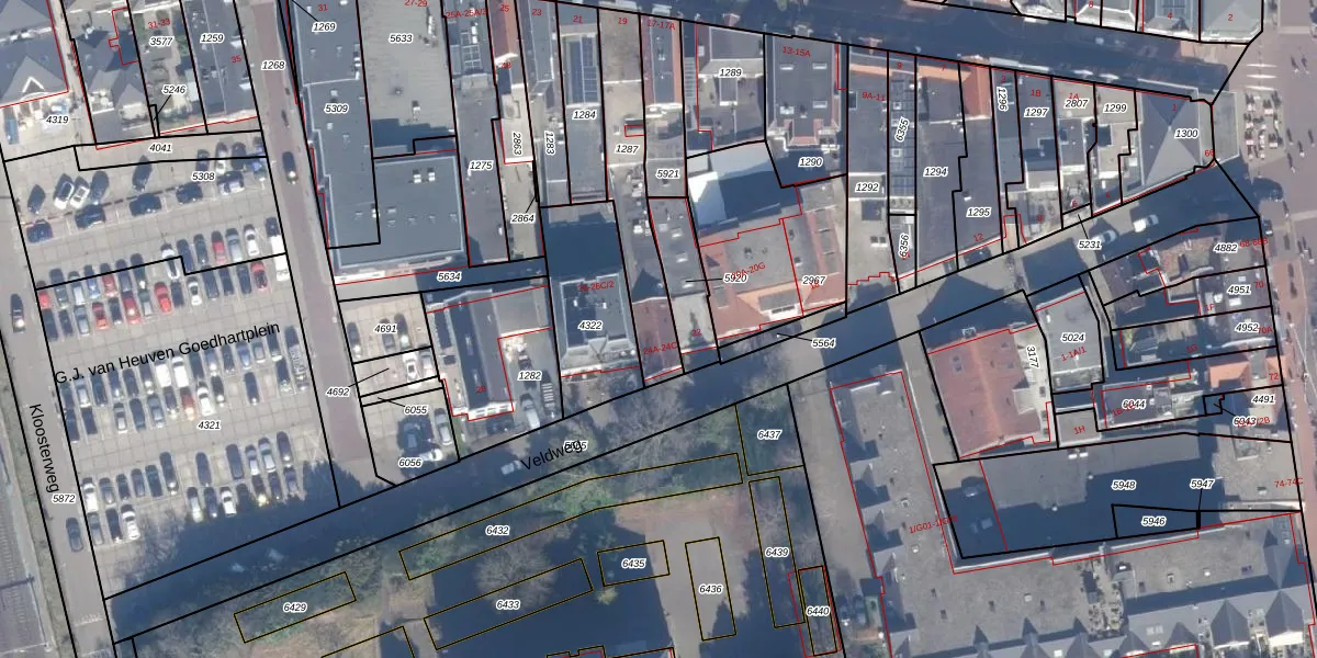 Veldweg 24-B is gelegen op kadastraal perceel BSM01E1287. Deze kadastrale aanduiding is uniek en wordt gebruikt door het Kadaster om eigendomsrechten en andere zakelijke rechten vast te leggen. Het perceel maakt onderdeel uit van de kadastrale gemeente Bussum.