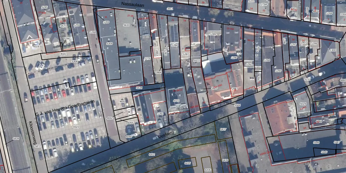 Het adres is gelegen op perceel 4322 in de sectie E en de kadastrale gemeente Bussum. De kadastrale aanduiding is aldus BSM01-E-4322. Het perceel is 365 m² groot. Dat is kleiner dan de gemiddelde perceeloppervlakte in Bussum, dat op 593,97 m² ligt. Het grootste perceel in de kadastrale gemeente is 38,9 ha. Het kleinste perceel heeft een oppervlakte van 0 m². Op het perceel liggen in totaal 6 adressen. In de Basisregistratie Kadaster (BRK) werden de grenzen van het perceel geregistreerd op 03-12-1999.