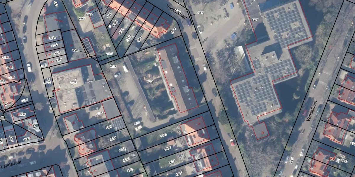 Het perceel waarop Vossiuslaan 45 staat heeft een oppervlakte van 2170 m². Dit is een zeer groot perceel. De perceeloppervlakte wordt geregistreerd door het Kadaster. Gedetailleerde informatie over de maten van dit perceel kunt u vinden in het rapport Kadastrale kaart met maatvoering van Vossiuslaan 45.