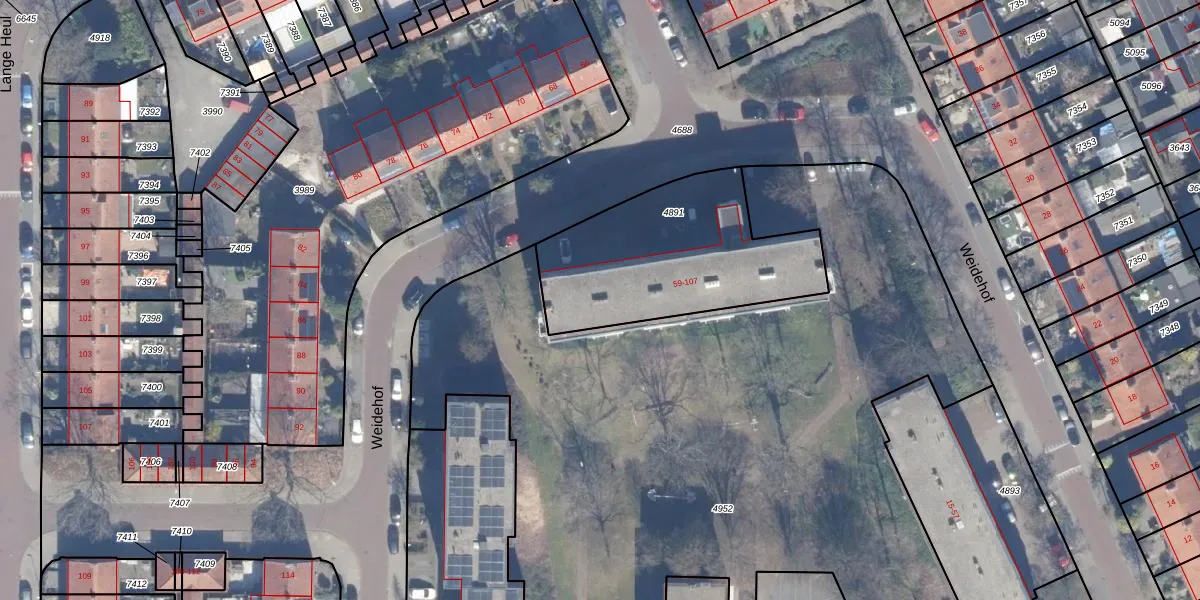 Het perceel waarop Weidehof 101 staat heeft een oppervlakte van 840 m². Dit is een groot perceel. De perceeloppervlakte wordt geregistreerd door het Kadaster. Gedetailleerde informatie over de maten van dit perceel kunt u vinden in het rapport Kadastrale kaart met maatvoering van Weidehof 101.