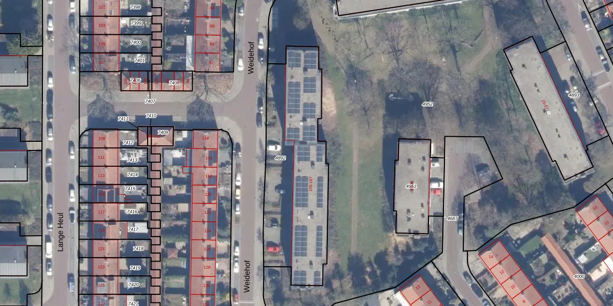 Het perceel waarop Weidehof 147 staat heeft een oppervlakte van 1397 m². Dit is een zeer groot perceel. De perceeloppervlakte wordt geregistreerd door het Kadaster. Gedetailleerde informatie over de maten van dit perceel kunt u vinden in het rapport Kadastrale kaart met maatvoering van Weidehof 147.