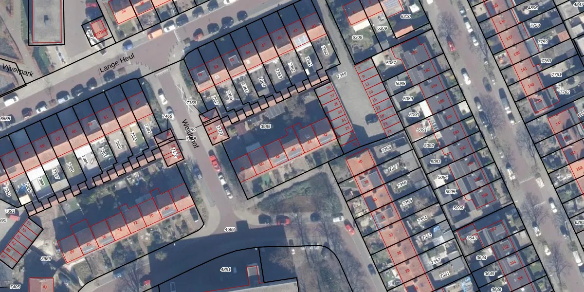 Het perceel waarop Weidehof 46 staat heeft een oppervlakte van 988 m². Dit is een groot perceel. De perceeloppervlakte wordt geregistreerd door het Kadaster. Gedetailleerde informatie over de maten van dit perceel kunt u vinden in het rapport Kadastrale kaart met maatvoering van Weidehof 46.