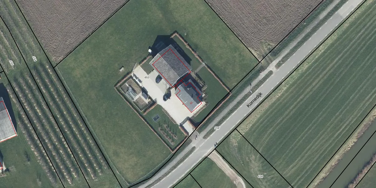 Kornedijk 11 is gelegen op kadastraal perceel BRN00O653. Deze kadastrale aanduiding is uniek en wordt gebruikt door het Kadaster om eigendomsrechten en andere zakelijke rechten vast te leggen. Het perceel maakt onderdeel uit van de kadastrale gemeente Buren.