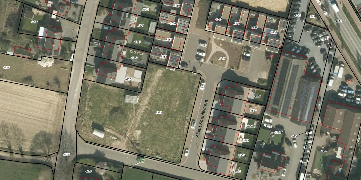 Albert Strahlestraat 9 is gelegen op kadastraal perceel CDR00A4846. Deze kadastrale aanduiding is uniek en wordt gebruikt door het Kadaster om eigendomsrechten en andere zakelijke rechten vast te leggen. Het perceel maakt onderdeel uit van de kadastrale gemeente Cadier en Keer.