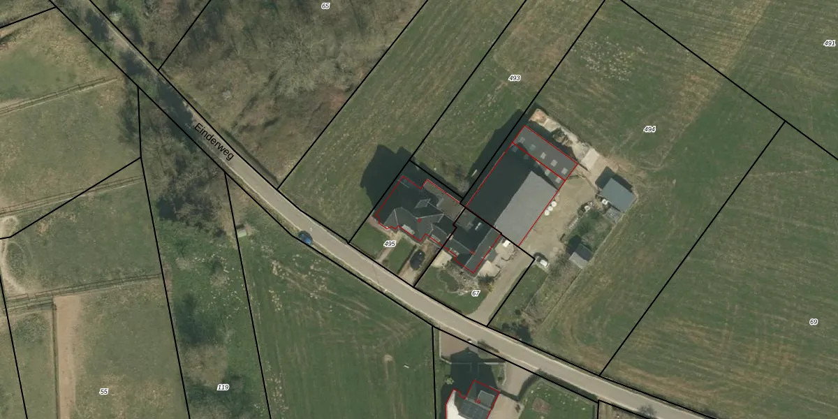 Einderweg 9 is gelegen op kadastraal perceel MGT02L495. Deze kadastrale aanduiding is uniek en wordt gebruikt door het Kadaster om eigendomsrechten en andere zakelijke rechten vast te leggen. Het perceel maakt onderdeel uit van de kadastrale gemeente Margraten.