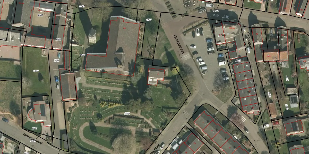 Het perceel waarop Groenstraat 2 staat heeft een oppervlakte van 5725 m². Dit is een zeer groot perceel. De perceeloppervlakte wordt geregistreerd door het Kadaster. Gedetailleerde informatie over de maten van dit perceel kunt u vinden in het rapport Kadastrale kaart met maatvoering van Groenstraat 2.