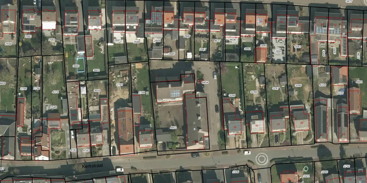 Het perceel waarop Kerkstraat 49 staat heeft een oppervlakte van 1072 m². Dit is een zeer groot perceel. De perceeloppervlakte wordt geregistreerd door het Kadaster. Gedetailleerde informatie over de maten van dit perceel kunt u vinden in het rapport Kadastrale kaart met maatvoering van Kerkstraat 49.
