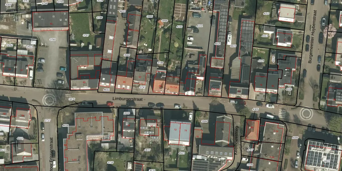 Limburgerstraat 71-A is gelegen op kadastraal perceel CDR00A4100. Deze kadastrale aanduiding is uniek en wordt gebruikt door het Kadaster om eigendomsrechten en andere zakelijke rechten vast te leggen. Het perceel maakt onderdeel uit van de kadastrale gemeente Cadier en Keer.