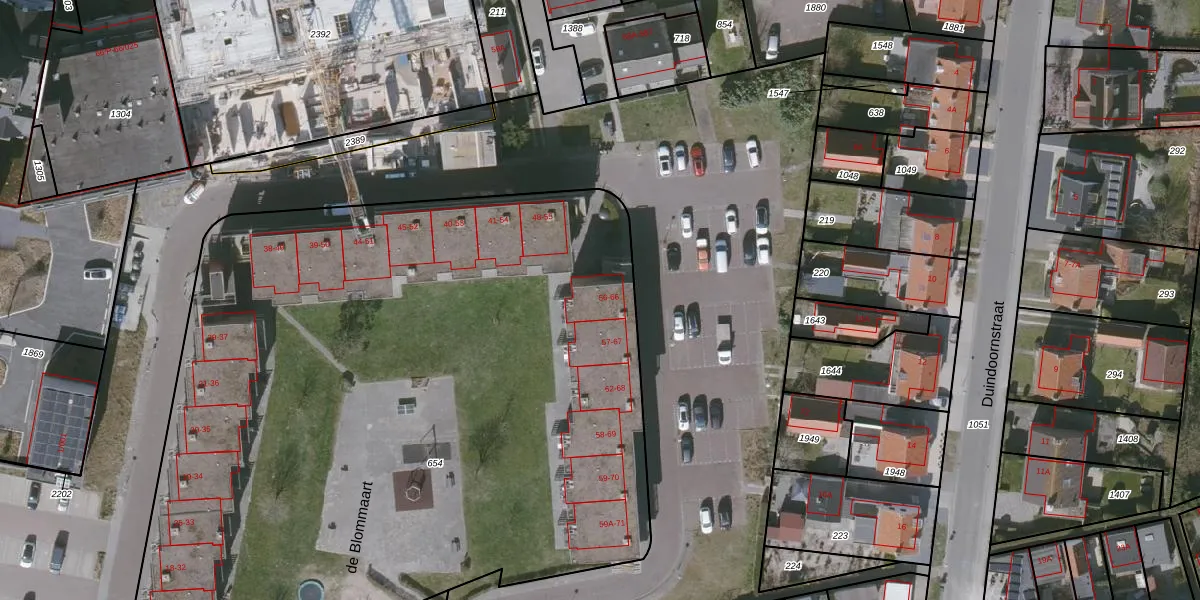 Het perceel waarop de Blommaart 56 staat heeft een oppervlakte van 5500 m². Dit is een zeer groot perceel. De perceeloppervlakte wordt geregistreerd door het Kadaster. Gedetailleerde informatie over de maten van dit perceel kunt u vinden in het rapport Kadastrale kaart met maatvoering van de Blommaart 56.