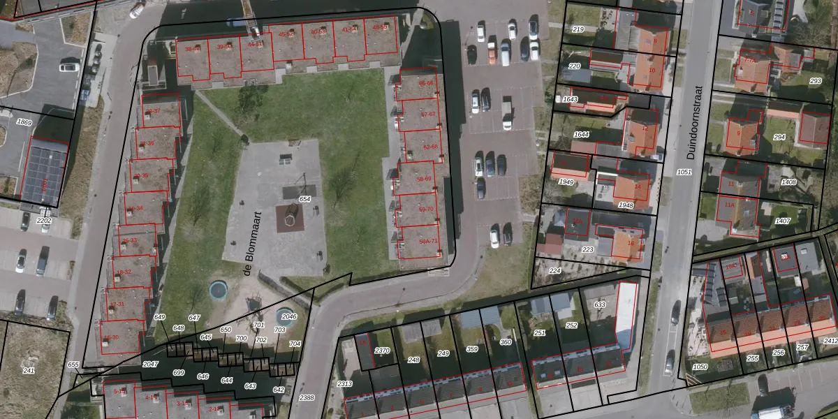 de Blommaart 59 is gelegen op kadastraal perceel OBG00EC654. Deze kadastrale aanduiding is uniek en wordt gebruikt door het Kadaster om eigendomsrechten en andere zakelijke rechten vast te leggen. Het perceel maakt onderdeel uit van de kadastrale gemeente Oostburg.