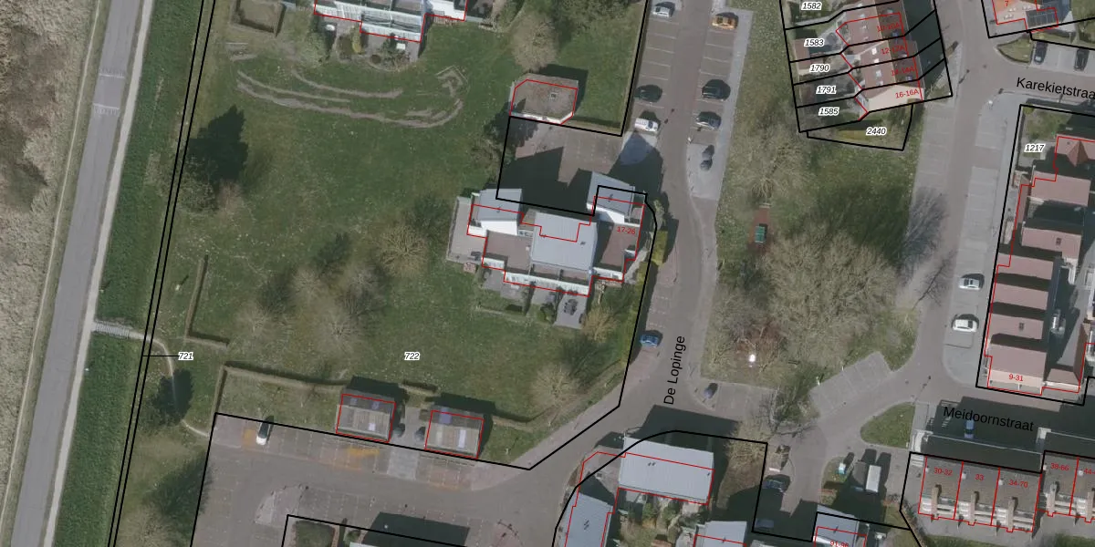 De Lopinge 26 is gelegen op kadastraal perceel OBG00EC722. Deze kadastrale aanduiding is uniek en wordt gebruikt door het Kadaster om eigendomsrechten en andere zakelijke rechten vast te leggen. Het perceel maakt onderdeel uit van de kadastrale gemeente Oostburg.
