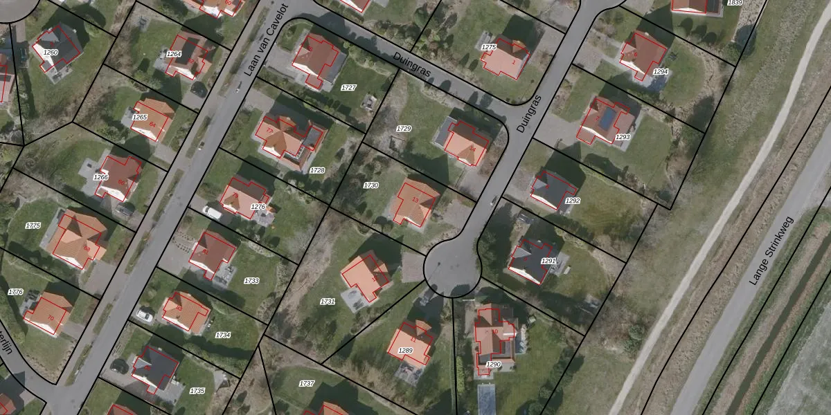 Het perceel waarop Duingras 13 staat heeft een oppervlakte van 514 m². Dit is een groot perceel. De perceeloppervlakte wordt geregistreerd door het Kadaster. Gedetailleerde informatie over de maten van dit perceel kunt u vinden in het rapport Kadastrale kaart met maatvoering van Duingras 13.