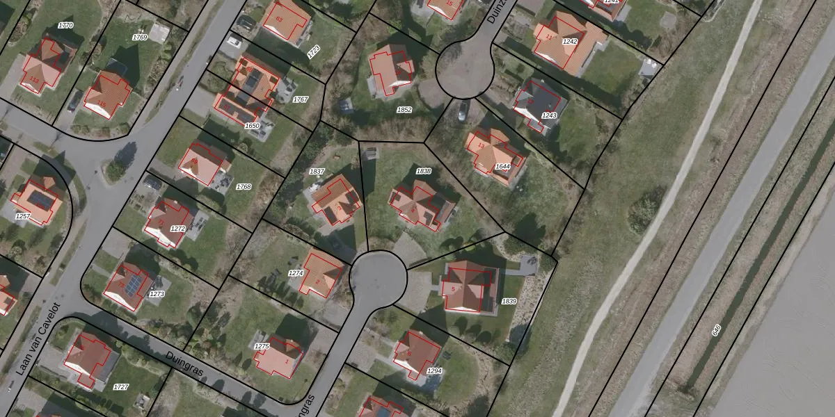 Het perceel waarop Duingras 4 staat heeft een oppervlakte van 682 m². Dit is een groot perceel. De perceeloppervlakte wordt geregistreerd door het Kadaster. Gedetailleerde informatie over de maten van dit perceel kunt u vinden in het rapport Kadastrale kaart met maatvoering van Duingras 4.