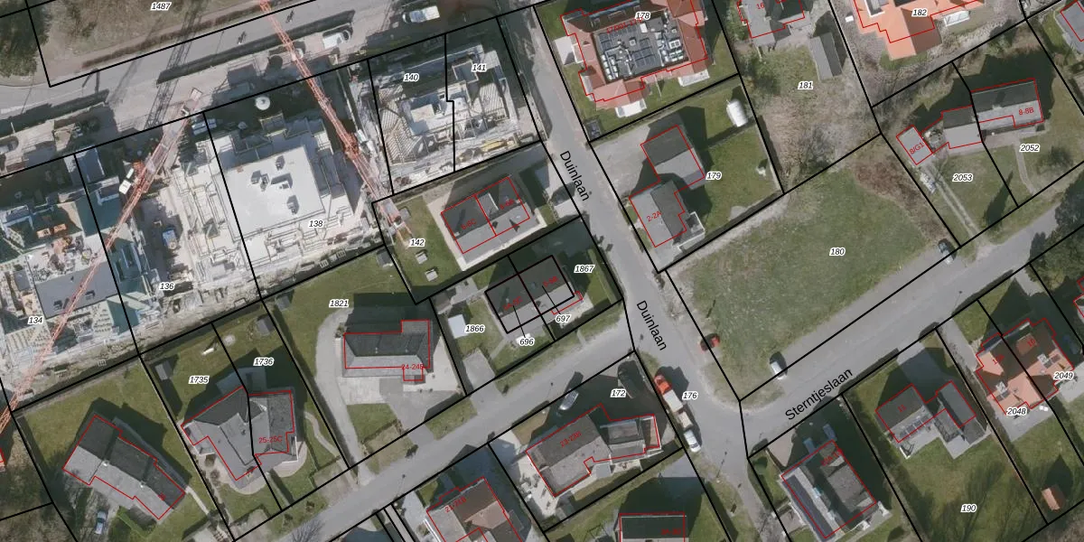 Het perceel waarop Duinlaan 5-B staat heeft een oppervlakte van 60 m². Dit is een klein perceel. De perceeloppervlakte wordt geregistreerd door het Kadaster. Gedetailleerde informatie over de maten van dit perceel kunt u vinden in het rapport Kadastrale kaart met maatvoering van Duinlaan 5-B.