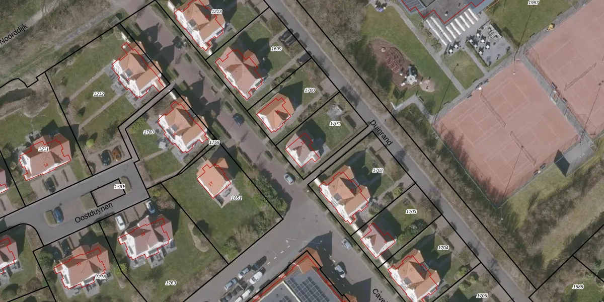 Het perceel waarop Duinrand 13 staat heeft een oppervlakte van 414 m². Dit is een groot perceel. De perceeloppervlakte wordt geregistreerd door het Kadaster. Gedetailleerde informatie over de maten van dit perceel kunt u vinden in het rapport Kadastrale kaart met maatvoering van Duinrand 13.