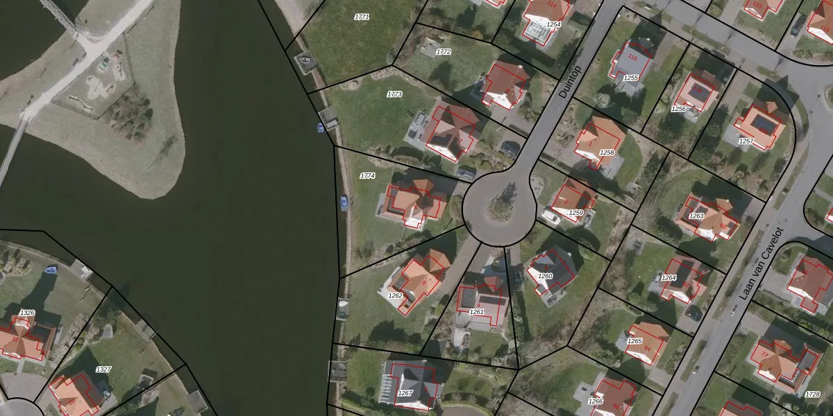 Het perceel waarop Duintop 6 staat heeft een oppervlakte van 654 m². Dit is een groot perceel. De perceeloppervlakte wordt geregistreerd door het Kadaster. Gedetailleerde informatie over de maten van dit perceel kunt u vinden in het rapport Kadastrale kaart met maatvoering van Duintop 6.