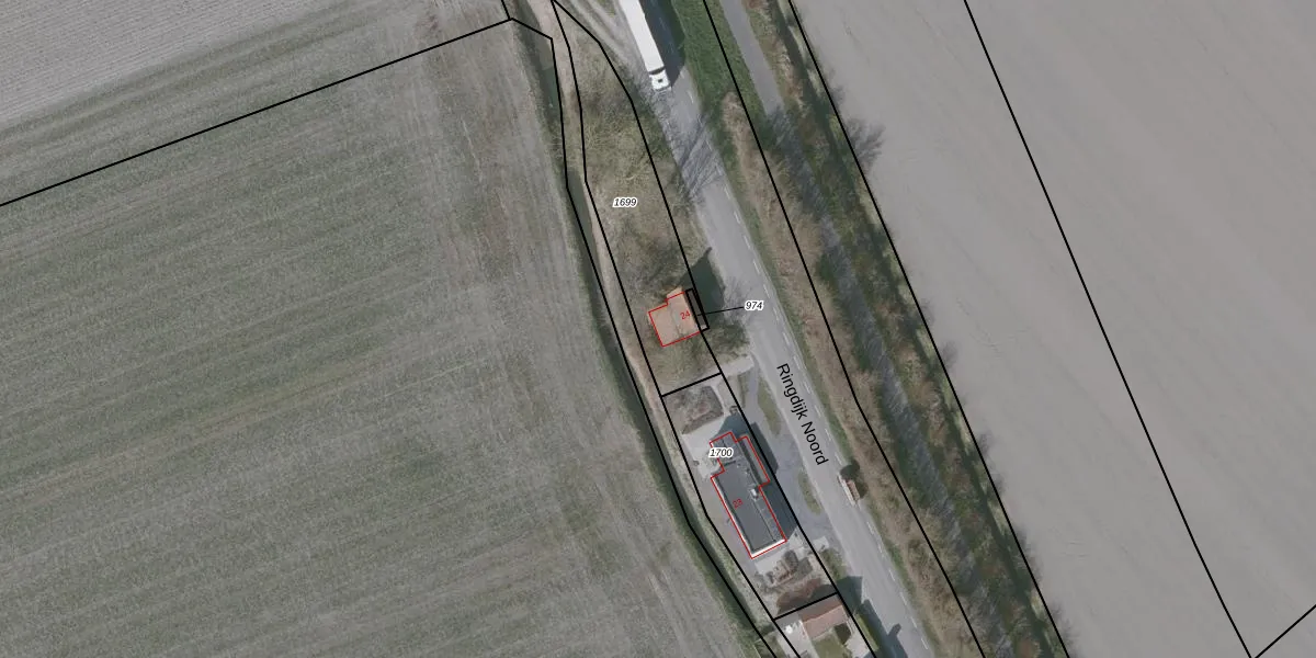Ringdijk Noord 24 is gelegen op kadastraal perceel OBG00EC1699. Deze kadastrale aanduiding is uniek en wordt gebruikt door het Kadaster om eigendomsrechten en andere zakelijke rechten vast te leggen. Het perceel maakt onderdeel uit van de kadastrale gemeente Oostburg.