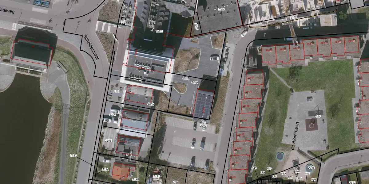 Het adres is gelegen op perceel 1869 in de sectie EC en de kadastrale gemeente Oostburg. De kadastrale aanduiding is aldus OBG00-EC-1869. Het perceel is 512 m² groot. Dat is kleiner dan de gemiddelde perceeloppervlakte in Oostburg, dat op 8655,52 m² ligt. Het grootste perceel in de kadastrale gemeente is 11,10 km². Het kleinste perceel heeft een oppervlakte van 0 m². Op het perceel zijn 4 adressen aanwezig. De huidige grenzen van het perceel zijn digitaal in de Basisregistratie Kadaster (BRK) geregistreerd op 16-05-2024.