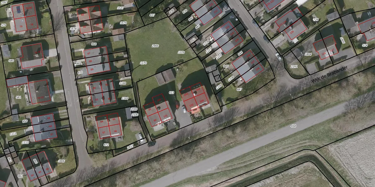 Wijk de Brabander 103 is gelegen op kadastraal perceel OBG00EC613. Deze kadastrale aanduiding is uniek en wordt gebruikt door het Kadaster om eigendomsrechten en andere zakelijke rechten vast te leggen. Het perceel maakt onderdeel uit van de kadastrale gemeente Oostburg.
