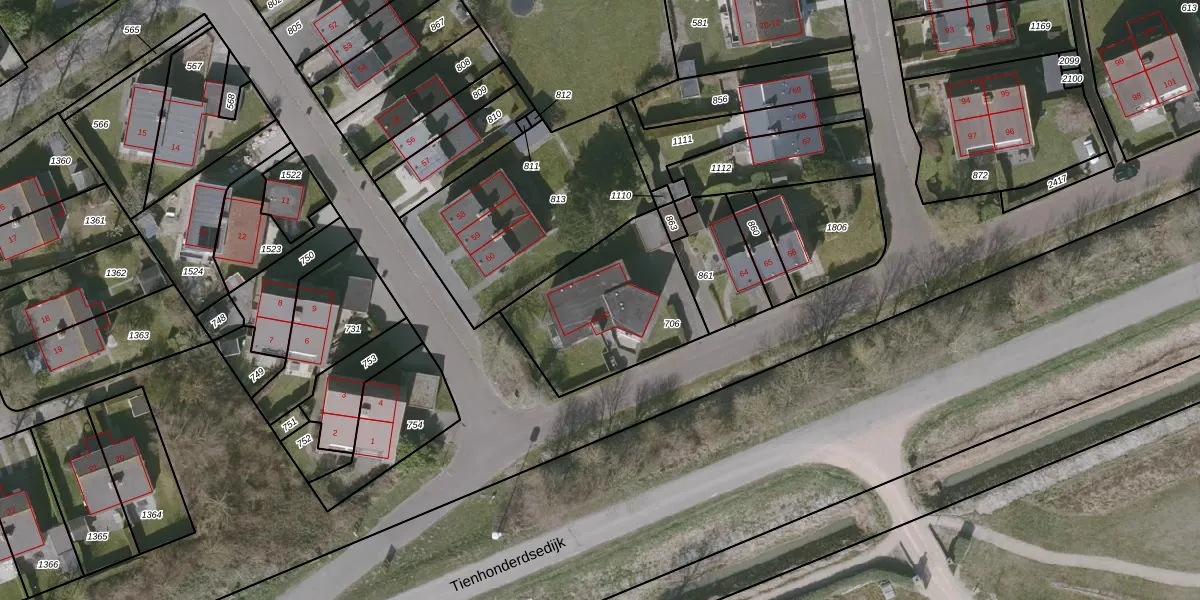 Het adres is gelegen op perceel 706 in de sectie EC en de kadastrale gemeente Oostburg. De kadastrale aanduiding is aldus OBG00-EC-706. Het perceel is kleiner dan gemiddeld in Oostburg. Het perceel is 597 m² groot, terwijl het gemiddelde ligt op 8654,17 m². Het kleinste perceel in de kadastrale gemeente is 0 m² groot. De grootste perceeloppervlakte is 11,10 km². Er zijn 3 adressen aanwezig op het perceel. De huidige grenzen van het perceel zijn digitaal in de Basisregistratie Kadaster (BRK) geregistreerd op 18-03-2009.