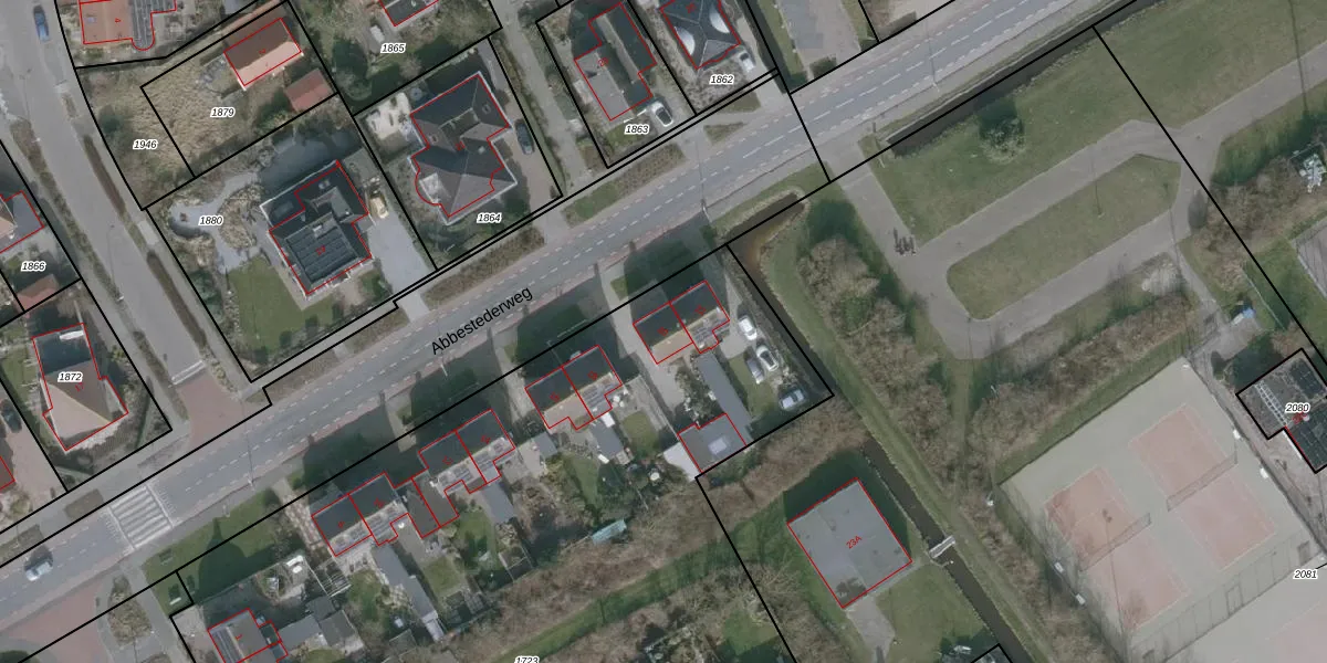 Het perceel waarop Abbestederweg 20 staat heeft een oppervlakte van 6420 m². Dit is een zeer groot perceel. De perceeloppervlakte wordt geregistreerd door het Kadaster. Gedetailleerde informatie over de maten van dit perceel kunt u vinden in het rapport Kadastrale kaart met maatvoering van Abbestederweg 20.