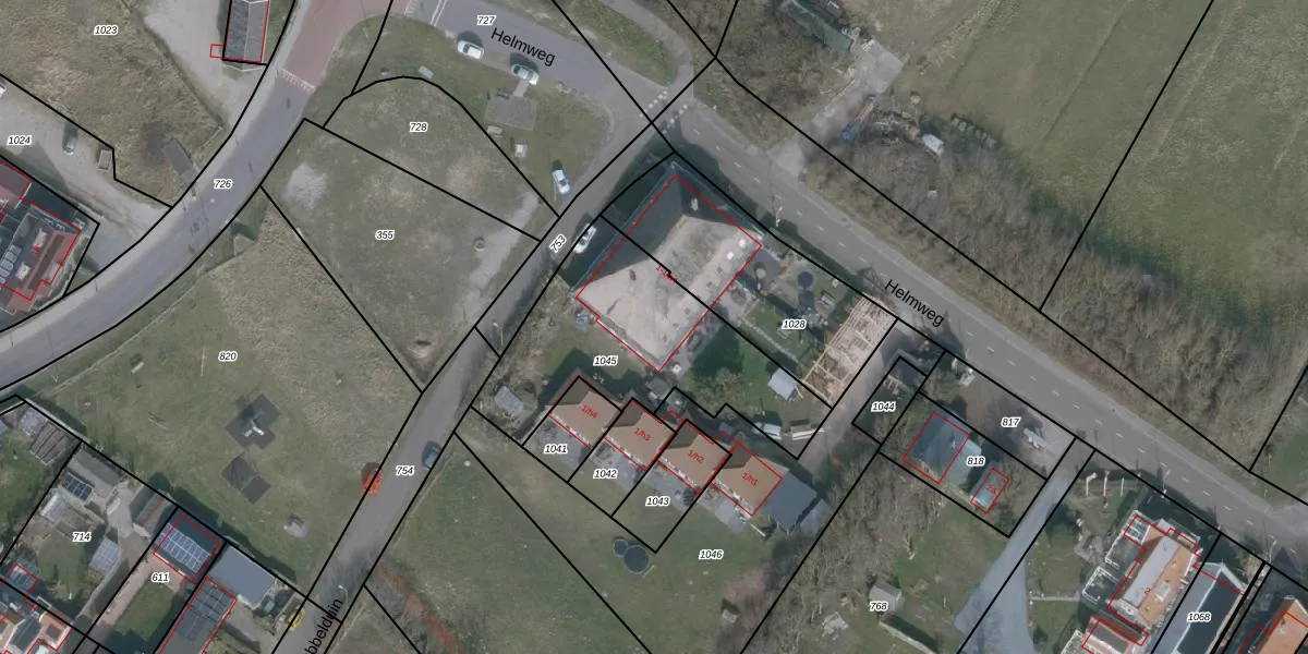 Het perceel waarop Helmweg 1-a4 staat heeft een oppervlakte van 895 m². Dit is een groot perceel. De perceeloppervlakte wordt geregistreerd door het Kadaster. Gedetailleerde informatie over de maten van dit perceel kunt u vinden in het rapport Kadastrale kaart met maatvoering van Helmweg 1-a4.