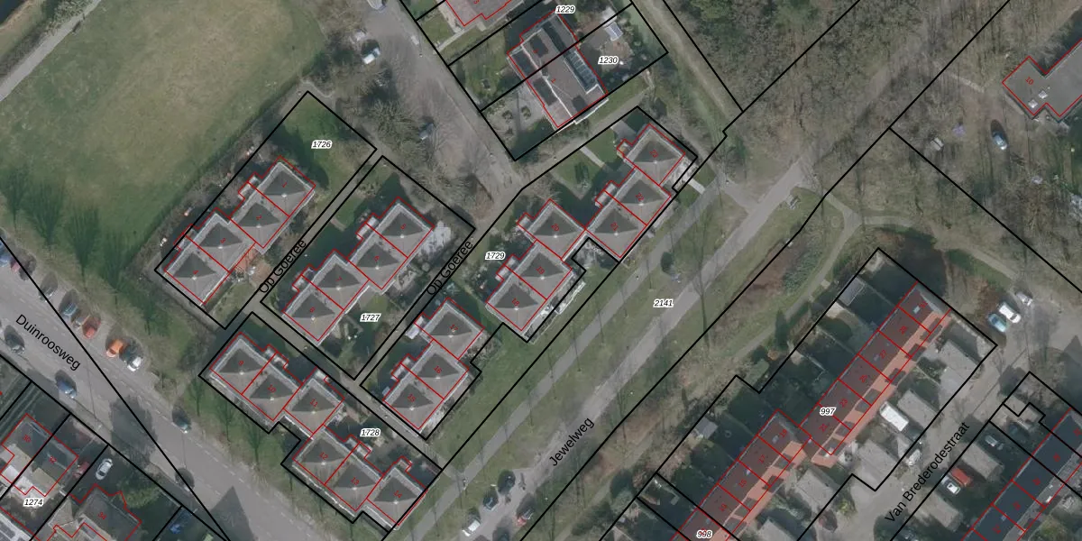 Het perceel waarop Op Goeree 19 staat heeft een oppervlakte van 1240 m². Dit is een zeer groot perceel. De perceeloppervlakte wordt geregistreerd door het Kadaster. Gedetailleerde informatie over de maten van dit perceel kunt u vinden in het rapport Kadastrale kaart met maatvoering van Op Goeree 19.