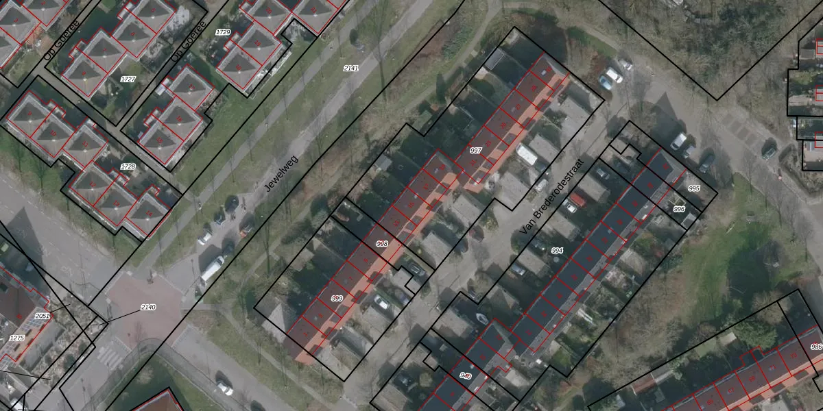 Het perceel waarop Van Brederodestraat 15 staat heeft een oppervlakte van 1629 m². Dit is een zeer groot perceel. De perceeloppervlakte wordt geregistreerd door het Kadaster. Gedetailleerde informatie over de maten van dit perceel kunt u vinden in het rapport Kadastrale kaart met maatvoering van Van Brederodestraat 15.