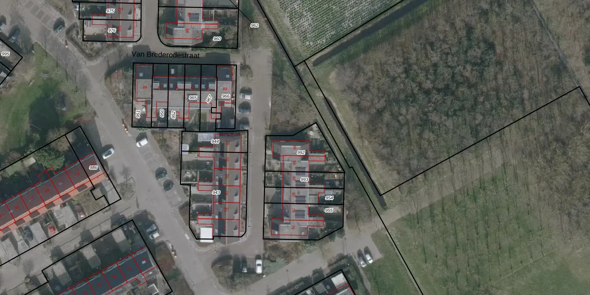 Het perceel waarop Van Brederodestraat 86 staat heeft een oppervlakte van 308 m². Dit is een groot perceel. De perceeloppervlakte wordt geregistreerd door het Kadaster. Gedetailleerde informatie over de maten van dit perceel kunt u vinden in het rapport Kadastrale kaart met maatvoering van Van Brederodestraat 86.