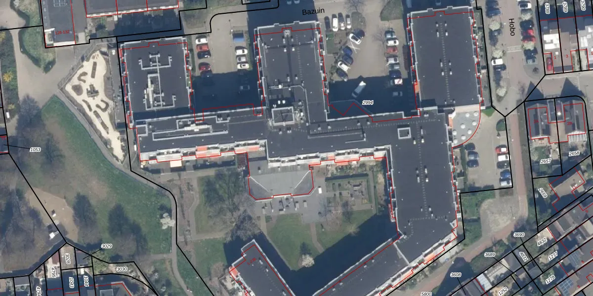 Het perceel waarop Bazuin 172 staat heeft een oppervlakte van 1,2 ha. Dit is een zeer groot perceel. De perceeloppervlakte wordt geregistreerd door het Kadaster. Gedetailleerde informatie over de maten van dit perceel kunt u vinden in het rapport Kadastrale kaart met maatvoering van Bazuin 172.