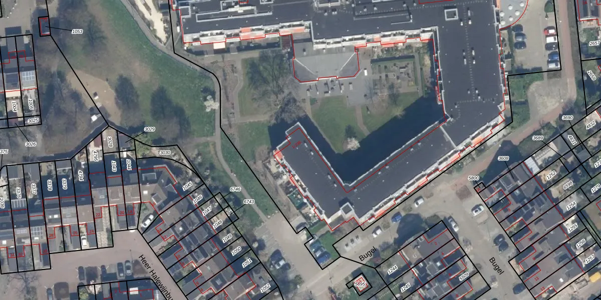 Het perceel waarop Bazuin 18 staat heeft een oppervlakte van 1,2 ha. Dit is een zeer groot perceel. De perceeloppervlakte wordt geregistreerd door het Kadaster. Gedetailleerde informatie over de maten van dit perceel kunt u vinden in het rapport Kadastrale kaart met maatvoering van Bazuin 18.